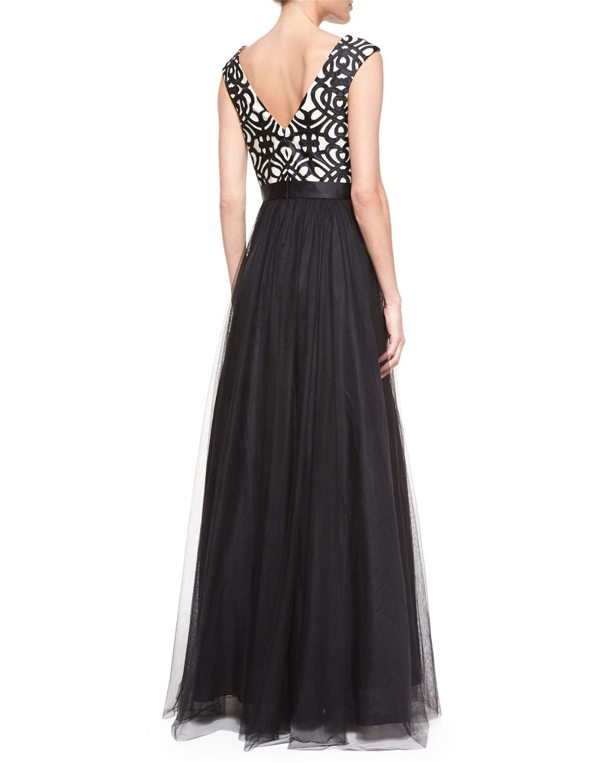 Lyst - Aidan Mattox Embroidered Cap-sleeve Boat-neck Dress